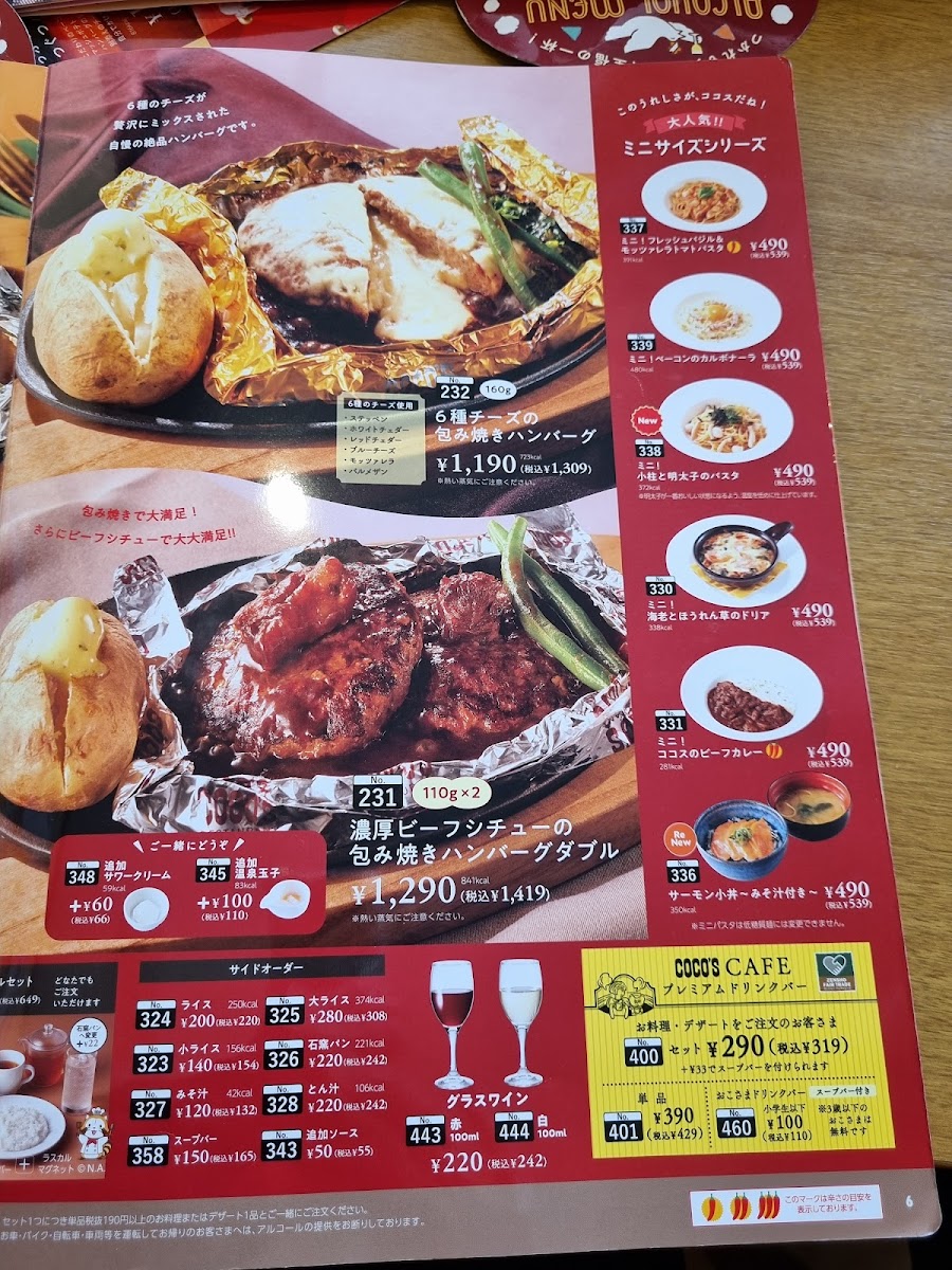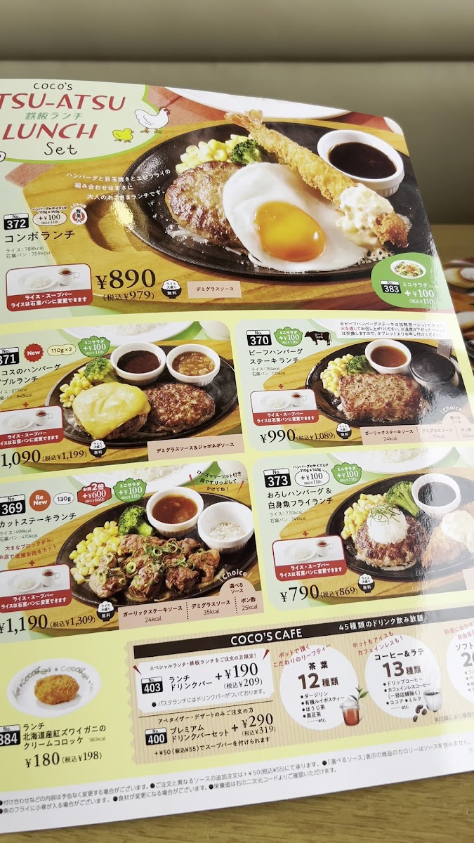 Welcome to Coco's Restaurant - Hiroshima, a delightful blend of Japanese and American dining experiences situated in the heart of Hiroshima. Their menu showcases an impressive selection of dishes, with the standout featuring the 包み焼きハンバーグ—a juicy hamburger enveloped in rich sauce, complemented by a hint of sweet Madeira wine.